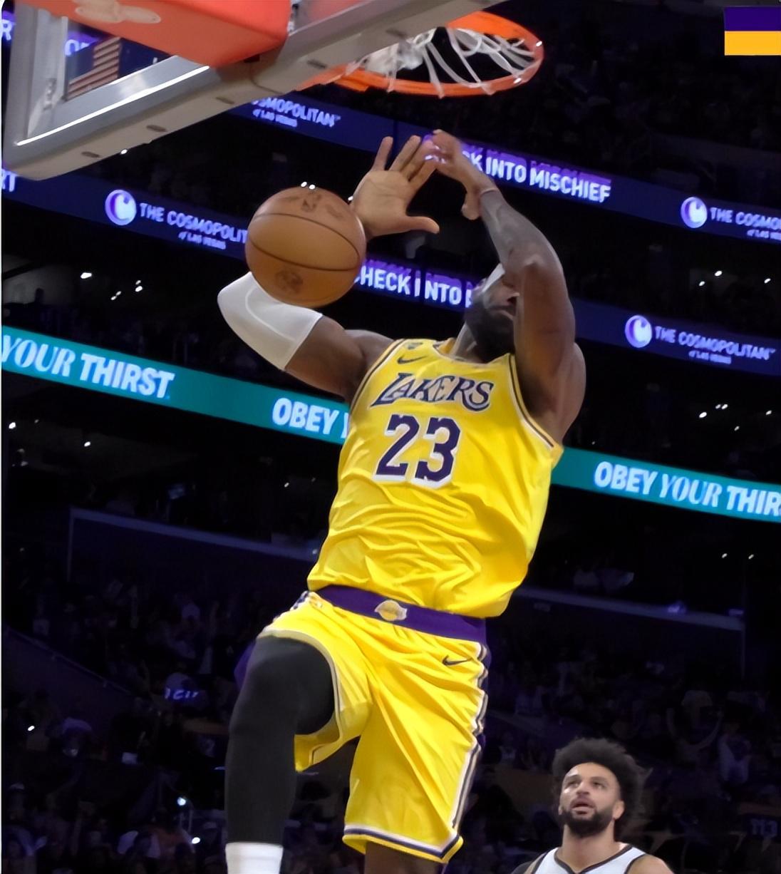 但好景不长第三节的湖人突然就没有了防守,掘金这一节疯狂追分,詹姆斯这一节也只有2次出手拿2分,三节15分。